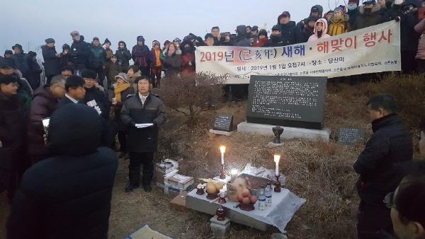 고촌읍행정복지센터는 기해년 새해 첫날 고촌읍 최고봉인 당산미에서 고촌읍민의 건강과 행복을 기원하는 해맞이 행사를 개최하고 힘찬 새해 첫 출발을 기념했다.