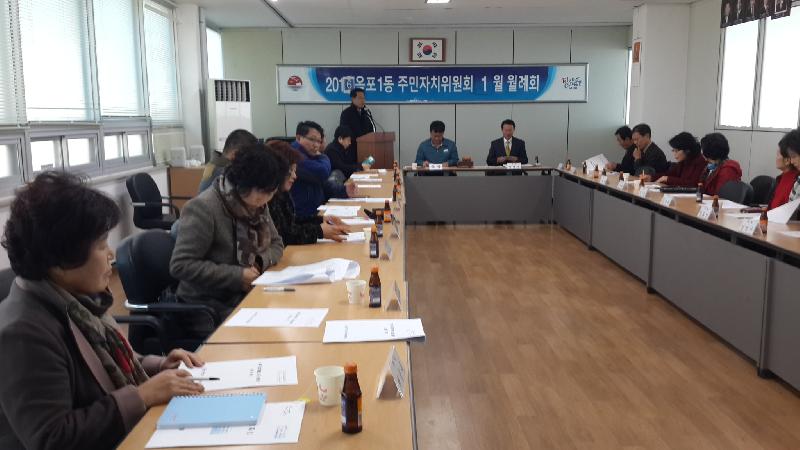 옥포1동 주민자치위원회(위원장 정영도)는 지난 13일(수) 11시, 옥포1동주민센터 2층 회의실에서 2016년 1월 월례회를 개최했다.