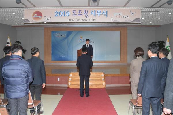 동두천시는 2일 동두천시청 대회의실에서 열린 2019년 기해년 시무식에서 간부공무원 등 소속 공직자 200여 명이 참석한 가운데 공직사회 청렴의식 제고를 위한 "공직자 청렴서약"을 실시했다.