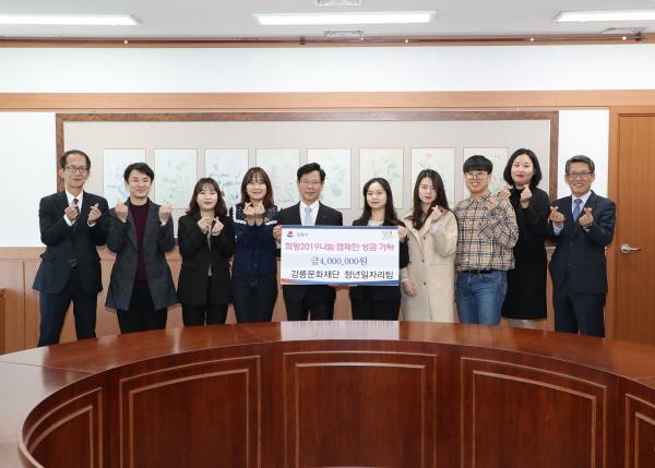 강릉문화재단 청년일자리사업 소셜메이커 양성과정 참여자 8명은 지난 2일 강릉시청을 방문해 희망2019 나눔 캠페인 성금으로 400만원을 강릉시에 기탁했다.