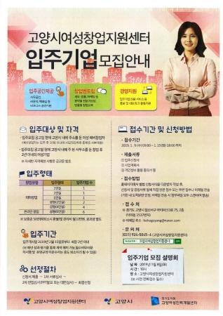 고양시와 고양시여성창업지원센터는 여성예비창업자와 창업초기여성기업인을 대상으로 오는 15일까지 센터 입주 기업 15개 업체를 모집한다.