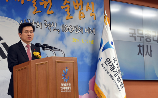 | 황교안 국무총리가 15일 경기 과천시 국가공무원인재개발원 출범식에서 치사하고 있다. |