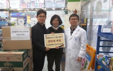 연수구약사회는 최근 지역의 취약계층아동을 위해 150만 원 상당의 영양제 54개를 연수구 드림스타트에 후원했다.