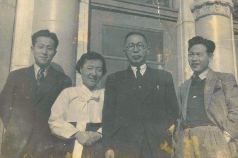 | 경교장에서 며느리와 함께(장우식, 안미생, 김구, 안우생 |