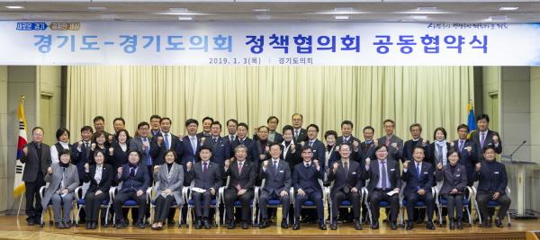 경기도와 경기도의회 상생발전을 위한 소통·협치 기구인 ‘경기도-경기도의회 정책협의회’가 3일 의회 1층 회의실에서 ‘공동협약서 서명식’을 갖고 본격적인 활동에 돌입했다.