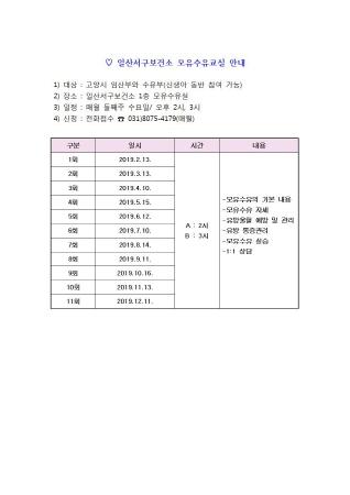 모유수유교실 참여를 원하는 경우 일산서구보건소 모자보건팀으로 방문 또는 전화 신청하면 된다.