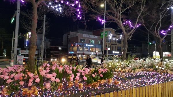 시네마 11번가 상가번영회는 지난 2일 시네마 11번가 우리은행 앞 광장에서 “시네마 11번가 夜 꽃밭 점등 행사”를 열고, 불빛 조명 시설이 앞으로 더욱 안정적인 상권 형성과 지역경제 활성화에 기여할 것이라고 전했다.