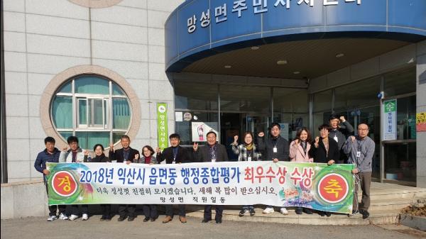 익산시는 매년 읍·면 종합행정 평가를 시행하는데 망성면은 적극적인 행정과 친절 행정 및 철저한 BSC 성과관리 등을 통해 주민 만족도를 높여 2년 연속 최우수상을 수상하는 기염을 토했다.