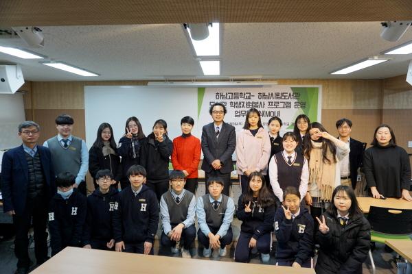 하남시립도서관은 지난 3일 하남고등학교와 함께"도서관 학생자원봉사 프로그램 협약식 및 참가자 오리엔테이션"을 개최했다고 밝혔다.