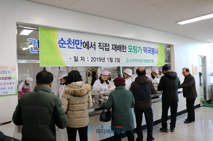 2019년 기해년 첫날을 맞아 순천만모링가협동조합 회원 10명이 조례동에 위치한 순천시동부복지관을 방문해 300여명의 어르신에게 따뜻한 마음을 담아 떡국 나눔봉사를 실시했다.