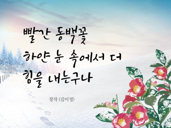 구는 현재 겨울편 공감글판으로 김미정님의 창작 문구인 ‘빨간 동백꽃 하얀 눈 속에서 더 힘을 내는구나’ 문안을 청사와 부평어울림센터 등에 게시해 주민들과 좋은 글로 소통하고 있다.