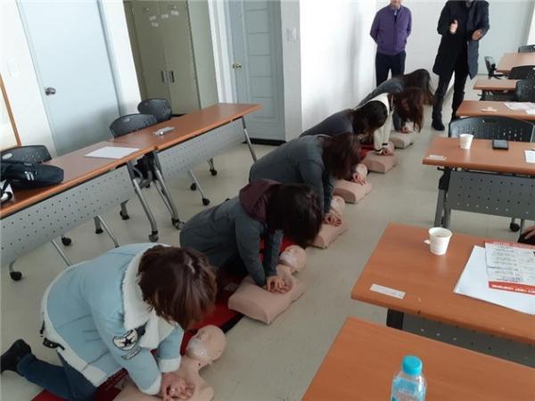 심폐소생술 교육은 응급처지 전문 교육센터의 도움을 받아 강사를 초빙하여 진행하였으며, 심폐소생술의 압박 위치, 압박 속도 등, 심폐소생술의 이론을 습득하고 응급상황의 대처 방안 등의 실습이 진행됐다.