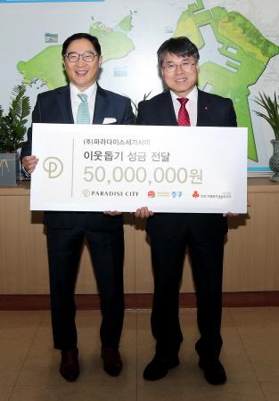 ㈜파라다이스 세가사미 통큰 기부 5,000만원 중구에 전달