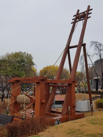 녹로는 긴 장대 끝에 도르래를 달고 끈을 얼레에 연결해 큰 돌을 높이 들어 올리는 기구다. 전체 높이가 11m에 이른다. 거중기는 도르래의 원리를 이용해 적은 힘으로 무거운 물건을 드는 기구다. 약 7t의 무게를 들어 올릴 수 있어 주로 채석장에서 무거운 돌을 실어 올릴 때 쓰였다.