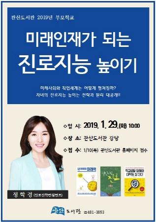 안산시 관산도서관은 오는 29일 ‘자녀와 함께 크는 참 좋은 부모학교 프로그램’으로 ‘미래인재가 되는 진로지능 높이기’ 강연을 진행한다.