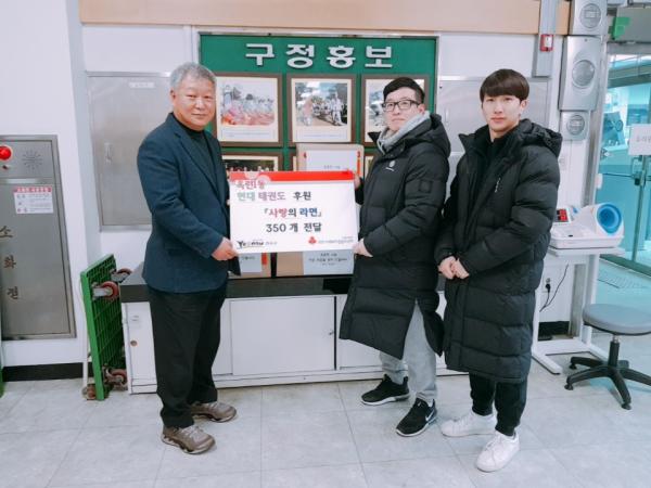 옥련시장에 위치한 현대태권도는 최근 옥련1동 행정복지센터에 저소득층을 위한 라면 350개를 전달했다.
