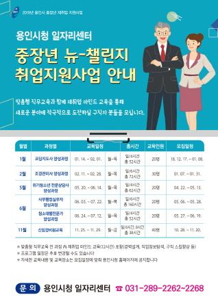 용인시는 중·장년 구직자들의 재취업을 돕기 위해 ‘뉴-챌린지 취업지원 프로그램’ 6개 과정을 연중 운영한다.