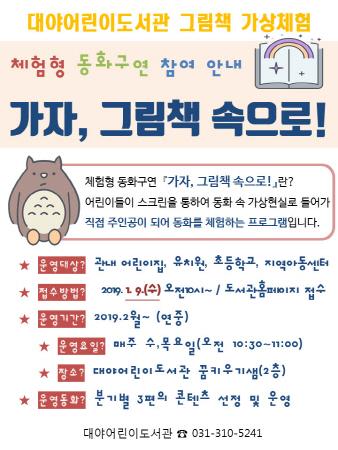 시흥시 대야어린이도서관 은 관내 공공도서관 중 최초로 체험형 동화구연 시스템 ‘가자, 그림책 속으로’를 구축, 오는 2월부터 정식 운영할 예정이다.
