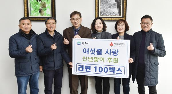 음악공연팀 ‘여섯줄 사랑’은 지난 7일 원주시청 시민복지국장실을 방문해 160만 원 상당의 라면 100박스를 기탁했다.