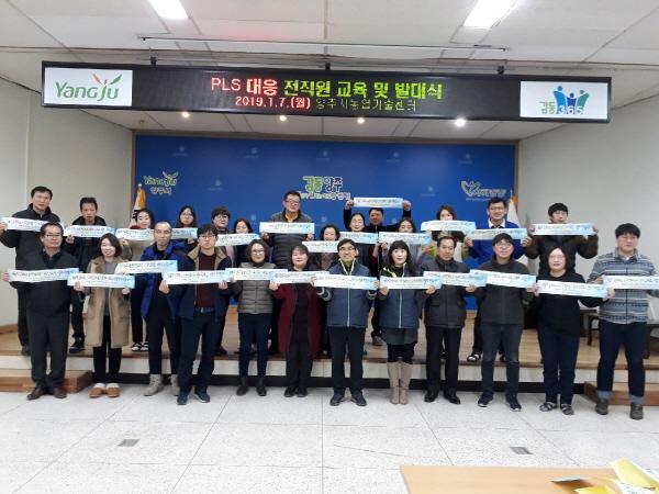 양주시 농업기술센터는 지난 7일 센터 대회의실에서 2019년 농약허용물질목록관리제도 전면시행 대비 현장대응 발대식과 전직원 교육을 진행했다.
