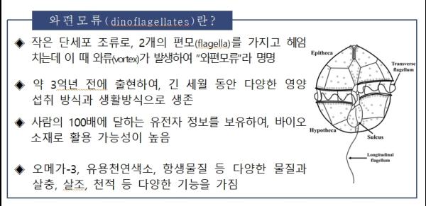 해양수산부는 국내에서 해양 와편모류 신종 2종을 새롭게 발견하고, 발견된 지역명으로 이름을 붙여 국제 학계에 보고했다고 밝혔다.