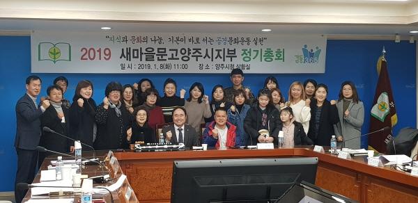 새마을문고 양주시지부는 8일 양주시청 상황실에서 2019년 정기총회를 개최했다. 이날 총회에는 이한우 새을문고 양주시지부 회장과 임원, 이사, 작은도서관 회장, 문고 지도자와 관계공무원 등 30여명이 참석했다.