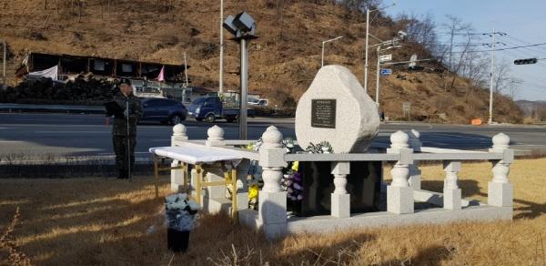 고인의 추모비는 당초 육군 제26기계화보병사단 제27전차대대에 건립되었으나 군부대의 통합으로 인해 지금의 한탄대교 입구 6.25 참천 기념탑 부지내로 2017년 4월 이전하여 육군 제38전차대대 주관으로 추모행사를 지속하고 있다.