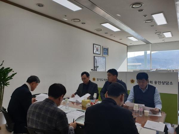 경기도의회 용인상담소에서 지난 8일 오후 더민주 김용찬·김중식·고찬석도의원이 용인시청 집행부 관계자 3명과 함께 가칭 용인서부소방서 등 설치 관련내용을 논의하는 자리를 가졌다.