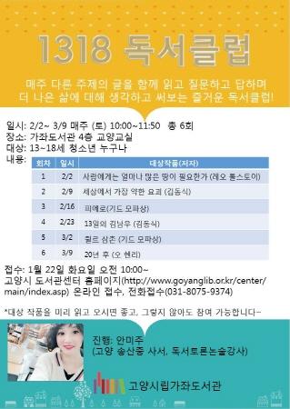 고양시 가좌도서관은 오는 2월부터 청소년 대상 독서 토론 프로그램 ‘1318 독서클럽’을 운영한다.