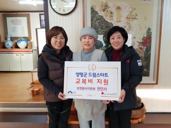 지난 9일 한국불교 태고종 천인사 회주 도인 큰스님은 보현봉사지원회를 통해 관내 취약계층 아동을 지원하는 양평군 드림스타트에 190만원의 장학금을 전달했다.