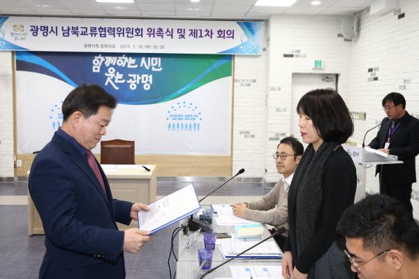 광명시가 10일 ‘광명시 남북교류협력위원회’를 출범하고 남북교류 사업을 본격적으로 추진한다. 시는 이날 오전 시청 중회의실에서 제1회 광명시 남북교류협력위원회를 열어 위원들을 위촉하고 남북교류협력기금 설치 및 운영계획을 심의했다.