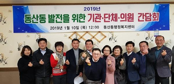 익산시 동산동은 10일 관내 식당에서 기관·단체, 의원 간 간담회를 개최하고 지역 현안에 대한 의견 교환과, 기관·단체 간 화합 및 발전을 위한 다양한 의견을 나눴다.