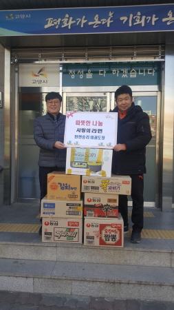 고양시 일산서구 탄현동은 지난 10일 관내 소재한 탄현 승리태권도에서 사랑의 라면 321개를 기부하는 전달식을 가졌다.