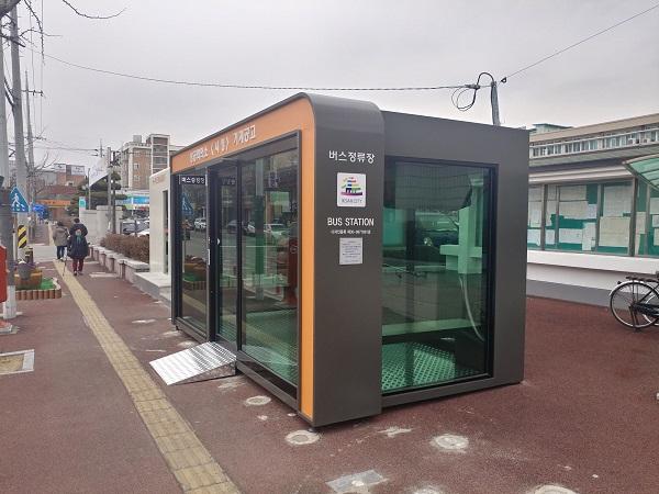 익산시는 지난달 12월 24일 시청 종합민원과 앞 버스승강장에 대중교통 이용 시민의 편익과 안전을 위한 친환경 버스승강장을 ㈜에코앤테크로부터 기증받아 설치했다고 11일 밝혔다.