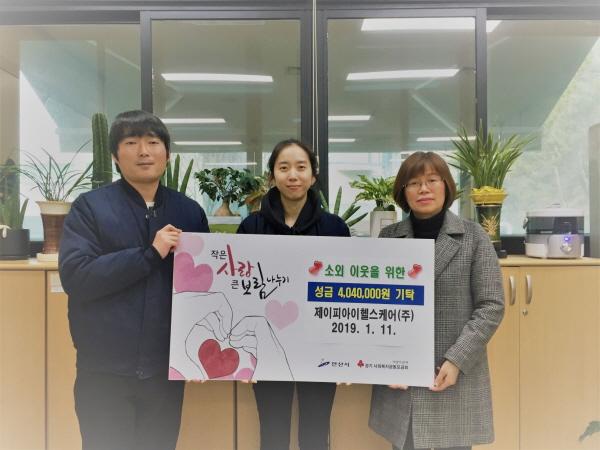 안산시 반월국가산업단지에 소재한 제이피아이헬스케어는 11일 이웃사랑성금 4백4만원을 기탁했다.
