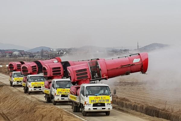 우선, 소독용 광역방제기를 지난 9일부터 기존 1대에서 4대로 확대 운영하고 있으며, 방제 시 방제기를 동시에 한 지역에 집중 투입해 방역효과를 극대화하고 있다.