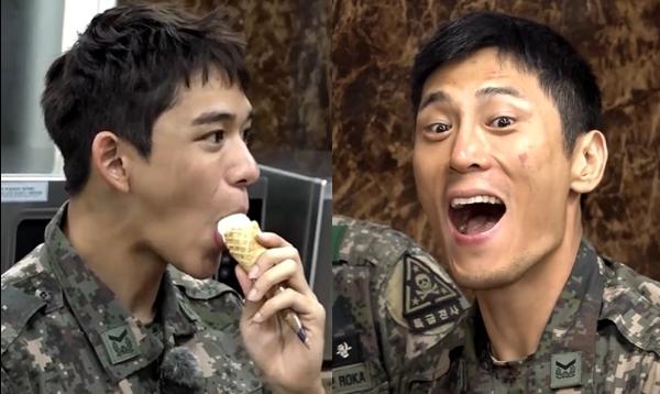 연거푸 탄산음료를 들이켜며 감탄을 연발하는 셔누의 모습과 쿠키 2개를 한입에 흡입하는 라비의 모습이 눈길을 모은다. 라비가 “과자 1년에 한 번 먹을까 말까 한다”라고 하자 선임이 그의 앞에 수북하게 쌓인 과자 봉지를 가리키며 “벌써 몇 개 드셨습니까”라고 핀잔을 준 모습도 포착됐는데, 이에 라비가 머쓱한 듯 과자 봉지를 양손으로 날려 보는 이들의 웃음을 유발한다.
