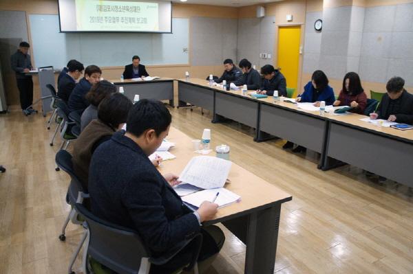 이종경 상임이사를 비롯한 3개 부서 부서장과 팀장, 센터장이 참석한 가운데 열린 이날 보고회의는 2019년 주요업무 계획 및 특수시책 보고 등으로 진행됐다.