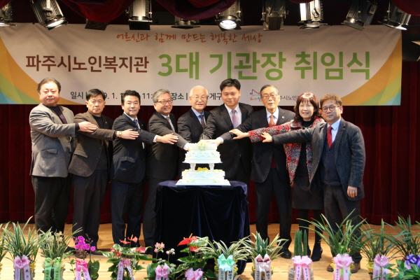 파주시노인복지관 제3대 육언태 관장 취임식이 지난 14일 파주시노인복지관 1층 뭉게구름홀에서 진행됐다.