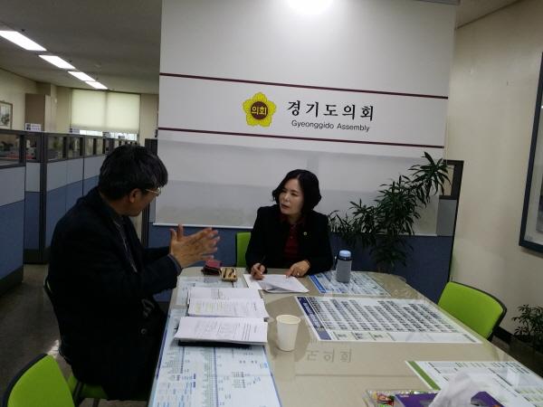 경기도의회 권정선 의원은 지난 14일 경기도의회 부천상담소에서 부천시 대기환경팀 관계자와 미세먼지를 줄이고 온실가스 감축하기 위한 노후경유차 지원과 관련해 논의 하는 시간을 가졌다.