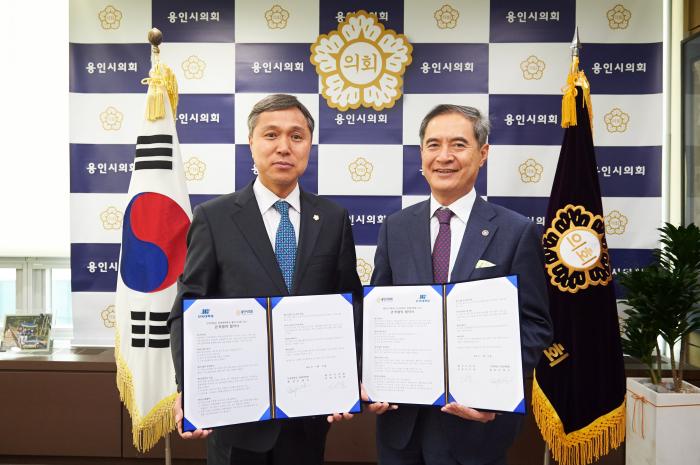 용인시의회(의장 이건한)는 지난 14일 의장실에서 단국대학교 경영대학원과 관․학 협력 협약을 체결했다.