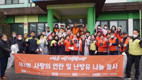 올해로 3년째 이어지는 이번 행사는 연탄 1,200장 및 난방유 8드럼을 지역사회로부터 후원받아 조안면 이장협의회, 주민자치위원회, 체육회, 자율방범대, 의용소방대, 새마을회 등의 조안면 내 여러 기관단체 회원들이 저소득층 일곱 가구에 직접 배달했다.
