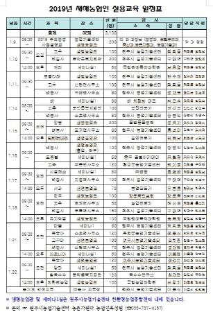 한편, 원주시 농업기술센터는 새해 영농계획 수립과 작목별 실용교육으로 농업인의 소득 증대에 기여하기 위해 오는 1월 22일까지 19품목 32회 3,130명을 대상으로 교육을 추진하고 있다.