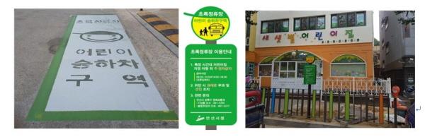 초록정류장은 유아·아동이 등·하원 할 때 어린이집 및 유치원 앞 도로에 어린이집 차량 전용 주·정차구역을 확보해, 안전하게 승·하차 할 수 있는 구역을 정하는 사업으로 노면표시, 안내표지판 및 방호울타리가 설치된다.