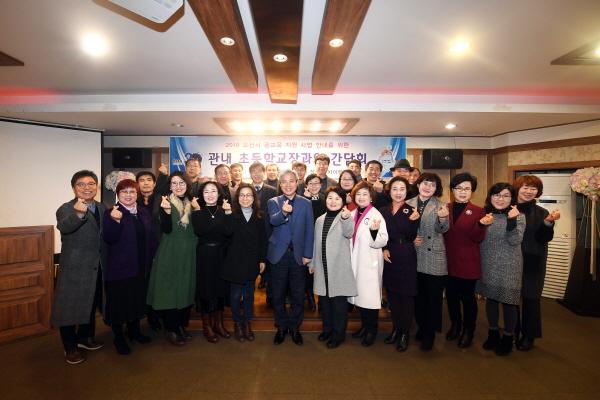 간담회에서는 오산시의 2018년도 공교육지원 사업의 성과와 평생교육과, 오산문화재단, 오산교육재단, 중앙도서관, 문화체육관광과 순으로 주요 사업안내와 학교장의 건의사항 및 의견 청취 등으로 진행했다.