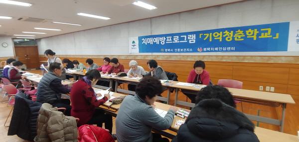 평택시는 치매조기발견 및 예방을 위해 안중보건지소 보건교육실에서 60세 이상 시민을 대상으로 2019년 상반기 ‘기억청춘학교 프로그램’을 진행하고 있다.