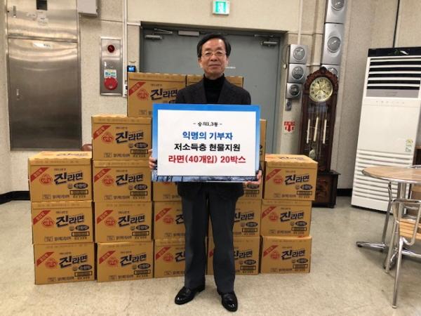 라면은 익명의 기부자가 한 할인마트를 통해 배달시켰다.