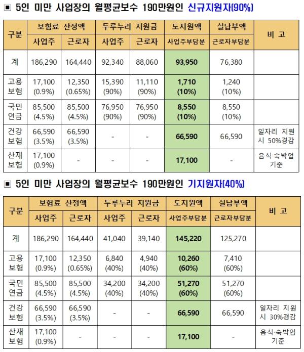 한편, 근로복지공단은 보험료 지원뿐만 아니라 최저임금 인상에 따른 30인 미만 사업장의 경영부담을 덜어주고 노동자의 고용안정을 위해 210만원 이하 노동자 1인당 월 최대 15만원의 일자리 안정자금을 지원하고 있다.