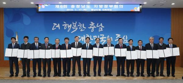 양승조 지사는 17일 도청 대회의실에서 황명선 논산시장 등 12개 시·군 시장·군수, 김용익 국민건강보험공단 이사장, 심경우 근로복지공단 이사장, 김성주 국민연금공단 이사장 등과 ‘충청남도 사회보험료 지원 사업 추진 업무협약’을 체결했다.