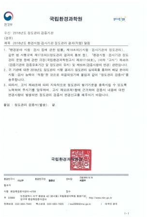 2018년에 수행한 숙련도평가와 현장평가 결과를 바탕으로 인천보건환경연구원에 대한 국립환경과학원의 정도관리 심의회를 거쳐 8개 환경 분야 전체에 대한 정도관리검증서를 수여받았다.